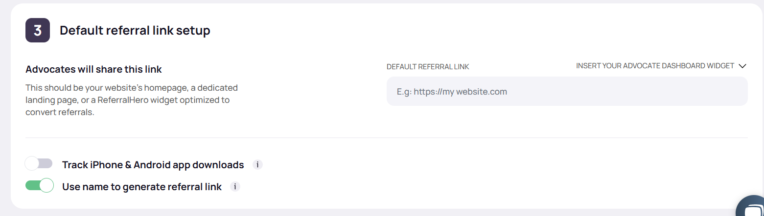 2. Switch on **Use name to generate referral link** (first click)&#x20;
