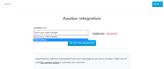 Now when a person signs up for your ReferralHero campaign, they will be immediately added to your Aweber account.