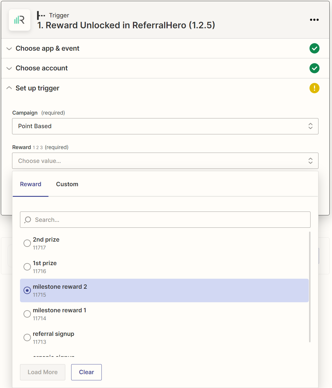**Step 6**: Choose your ReferralHero Campaign and Reward