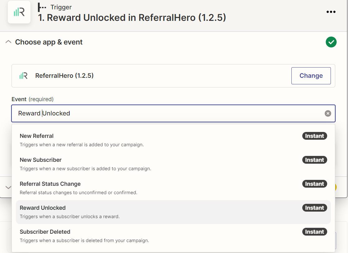 If you can't find the ReferralHero app in Zapier, [go to this page](https://zapier.com/developer/public-invite/16418/latest/) and add the app to your account.