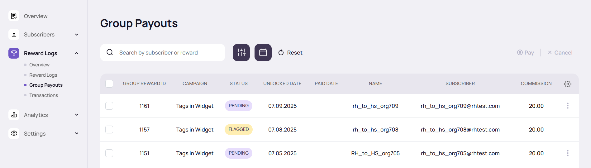 A Group Reward entry is created in Group Payouts