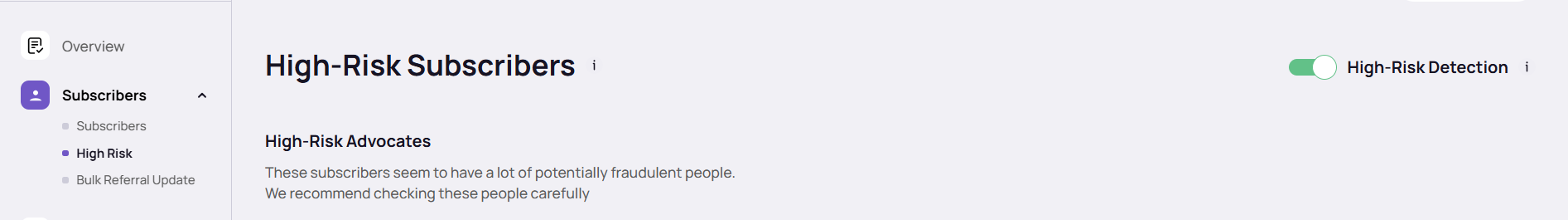 1. Go to **Subscribers > High Risk > Suspicious Referrals**